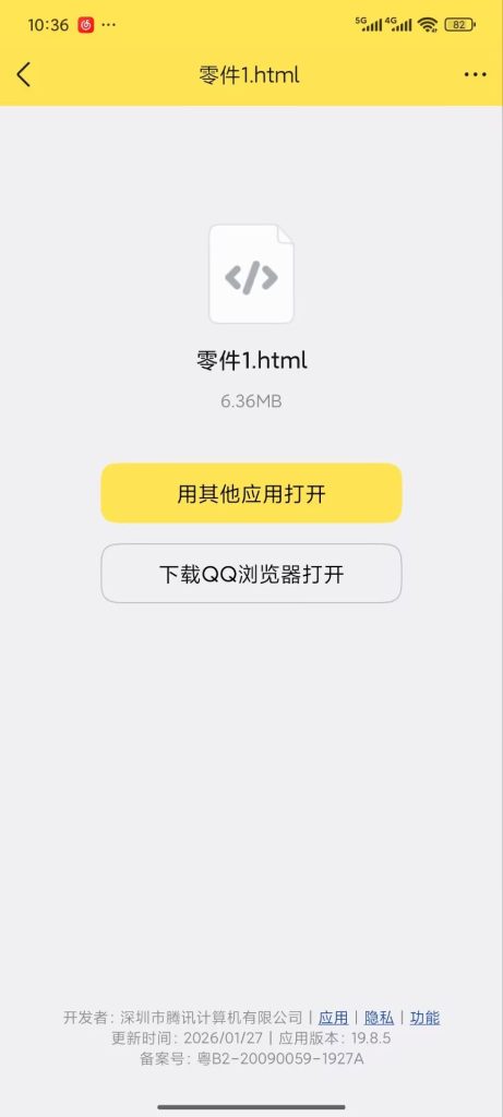 - 所需查看的人员通过长按文件选择使用浏览器打开html文件,即可查看3D模型