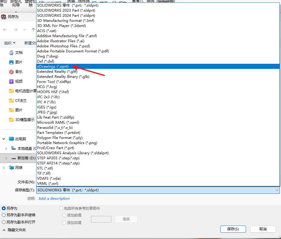 使用soildworks打开3d模型并另存为.eprt格式