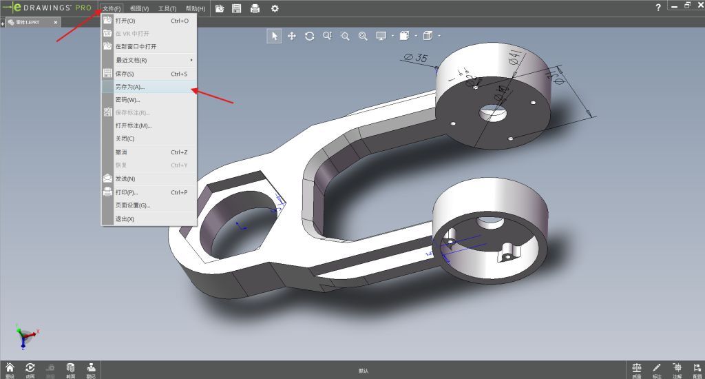 使用edrawings打开.eprt格式文件并另存为.html格式